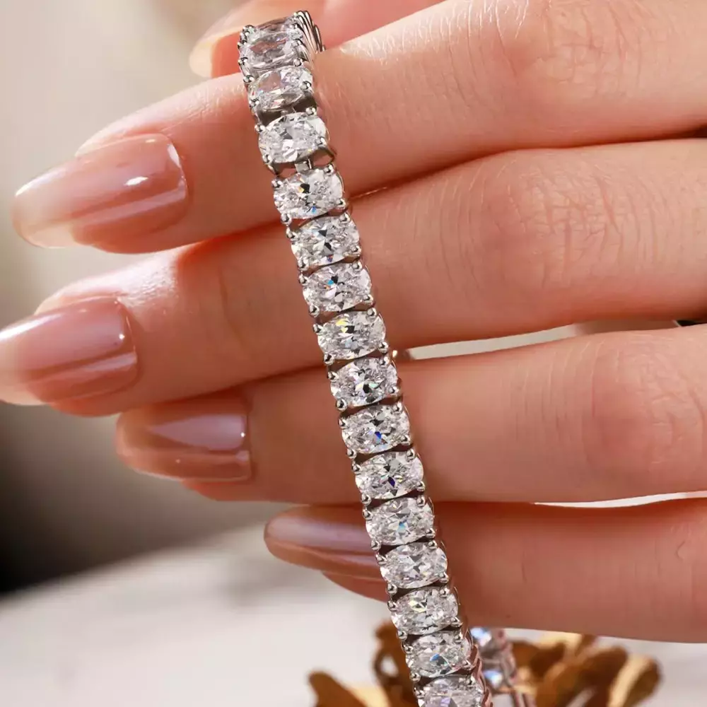 A Pulseira Luxo Moissanite 0,5 Quilates é uma joia de alto padrão que une sofisticação, brilho incomparável e qualidade excepcional. Produzida em prata esterlina 925 com acabamento em banho de ouro branco 18K, esta pulseira apresenta pedras de moissanite corte oval cuidadosamente lapidadas para refletir a luz de forma intensa e deslumbrante. Cada pedra possui cor D e clareza VVS1, padrão máximo de pureza, garantindo um visual luxuoso digno das joalherias mais prestigiadas.